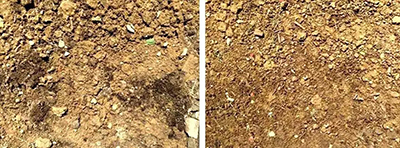 注意:翻耕需要判斷土壤含水情況,以免太濕易形成泥條、泥塊,太干則不易破碎。