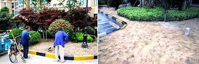 細平后的微小坑洼,可利用河沙覆蓋表層約2-3厘米進行地表找平,保證地形流暢的效果。